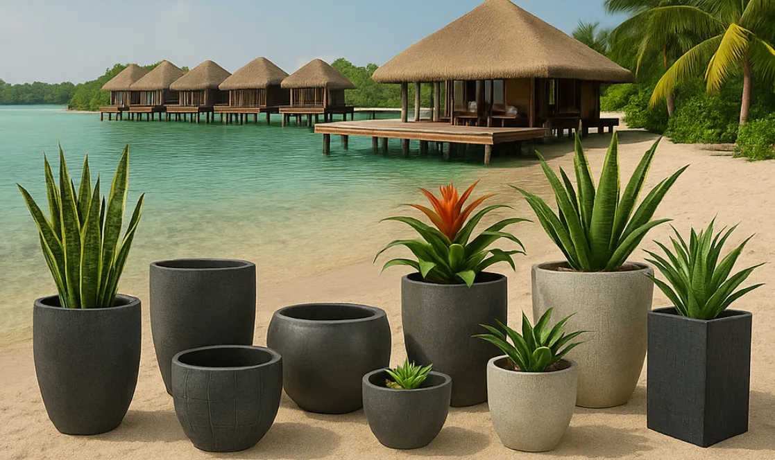 For over a decade, Anoosaara Enterprises Pvt Ltd has been a trusted partner to leading hotels and resorts across the Maldives and Sri Lanka—supplying a comprehensive range of landscaping and decorative pot solutions. We also specialize in handling all your pre-opening garden and decorative pot requirements—seamlessly and reliably. From large pots for planting mature trees to elegant indoor and outdoor planters, guest foot wash water pots, umbrella holders, buffet display vases, water fountains, and custom decorative pieces, we supply everything needed to create beautiful, functional spaces.