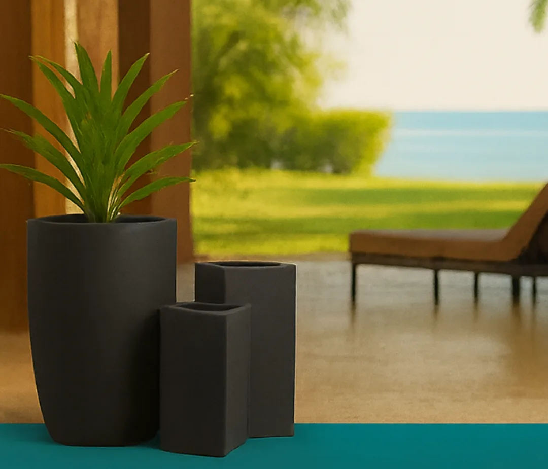 Crafted from clay, terracotta, cement, fiber clay, and fiber cement, our pots combine durability with refined design—perfectly suited for tropical environments. Whether you choose from our standard collections or need something fully customized, we bring your vision to life.
